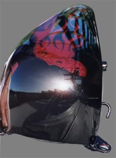 Silver base, black art work and body colour, then silver pearl, red candy and ten coats acrylic lacquer clear
